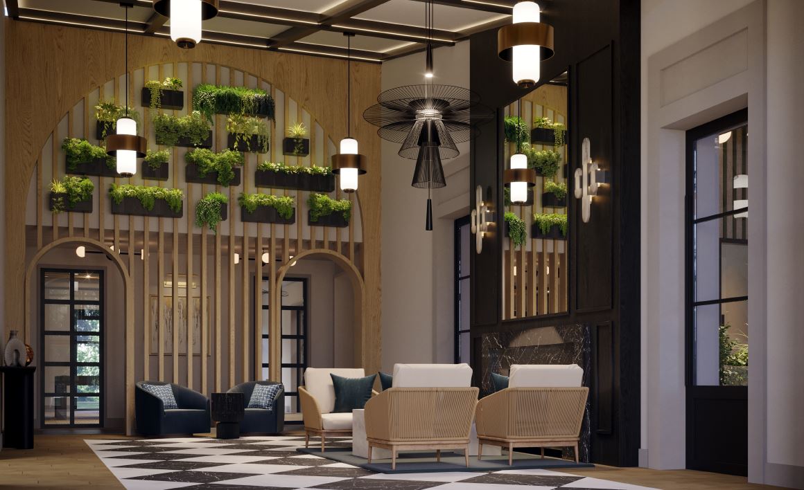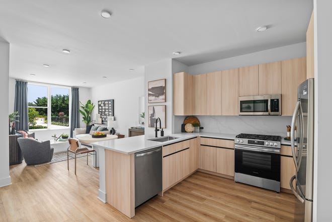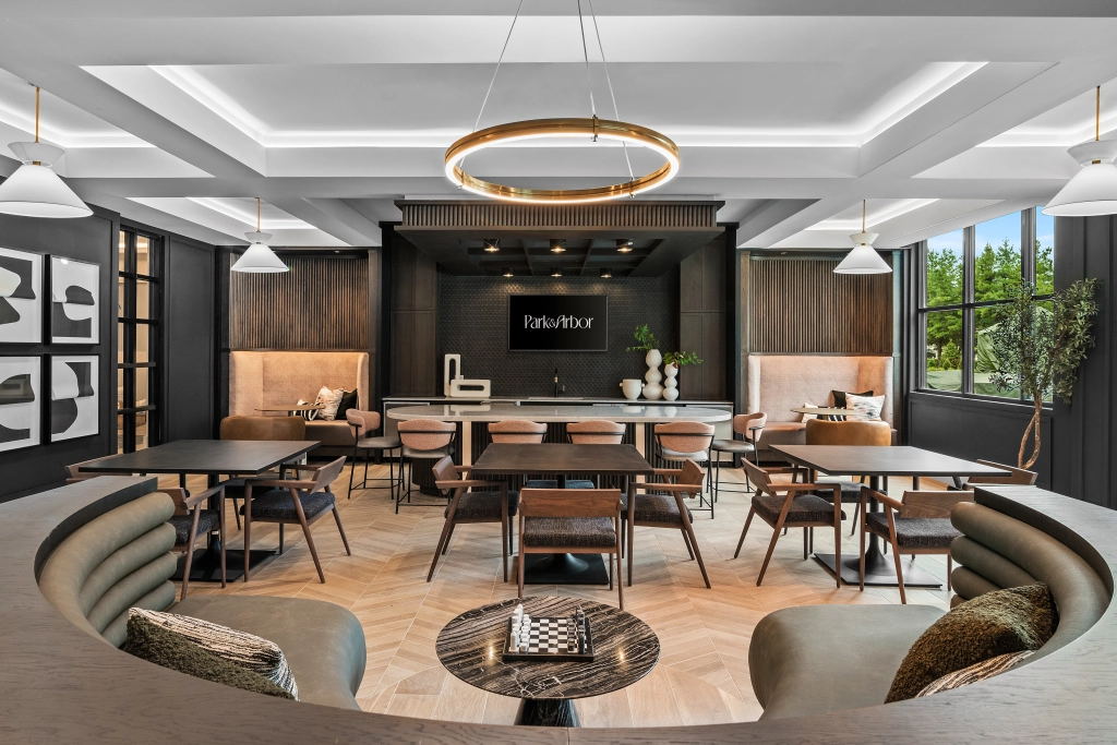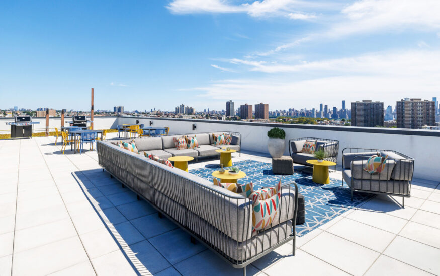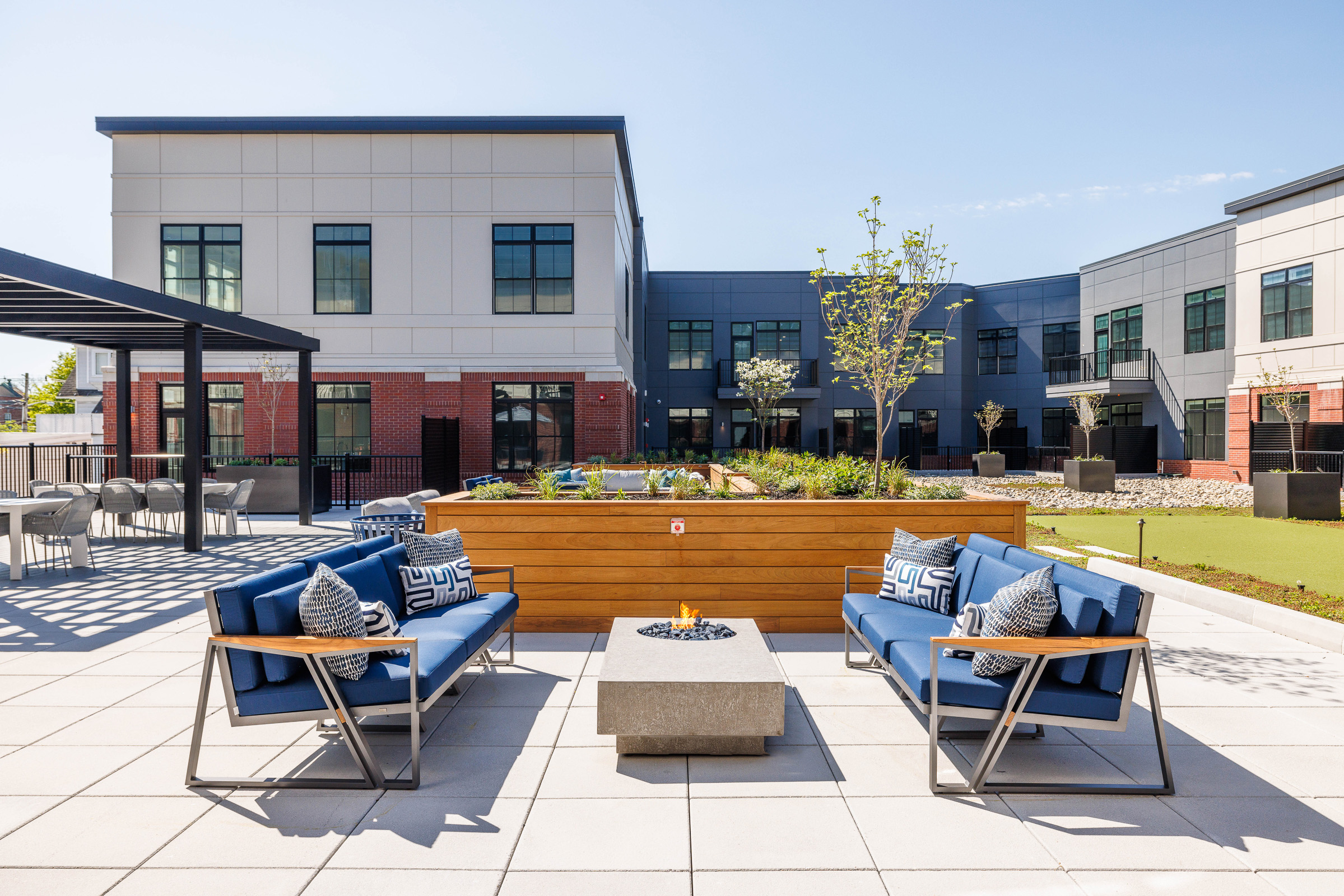 photo of outdoor fireplace lounge and pool area at Highlands at Hilltop apartments by RHO Residential in Verona, NJ
